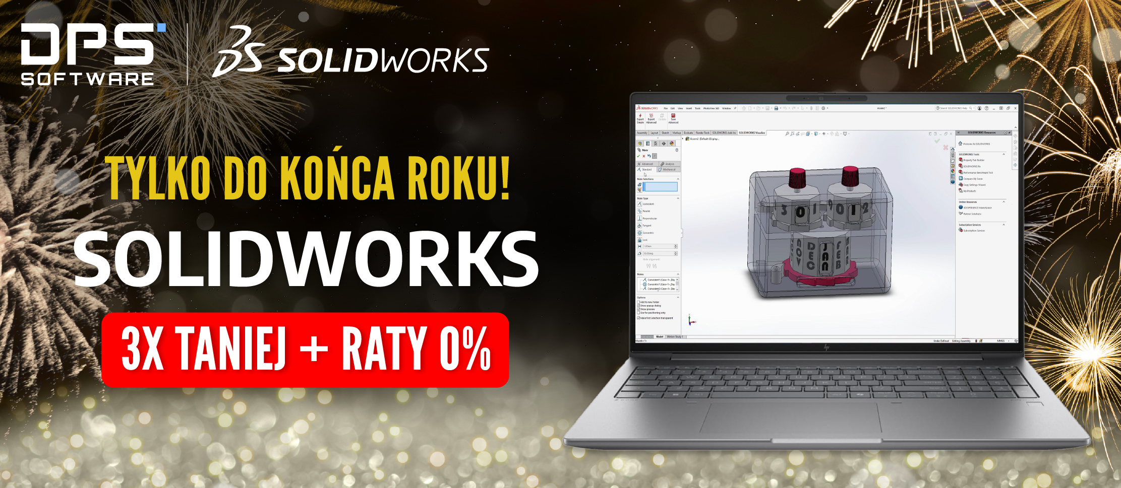 Oferta specjalna, dzięki której możesz kupić oprogramowanie SOLIDWORKS 3x taniej, skierowana jest przede wszystkim do osób, które chcą wejść w nowy rok na nowym, wyższym poziomie. To wyjątkowa okazja aby zainwestować w rozwój swojego biznesu i zyskać przewagę konkurencyjną, wykorzystując najbardziej zaawansowane rozwiązania dedykowane Inżynierom. Jeśli chcesz podnieść efektywność swojej pracy, zoptymalizować procesy projektowe i realizować bardziej ambitne projekty, ta oferta jest stworzona z myślą o Tobie!
